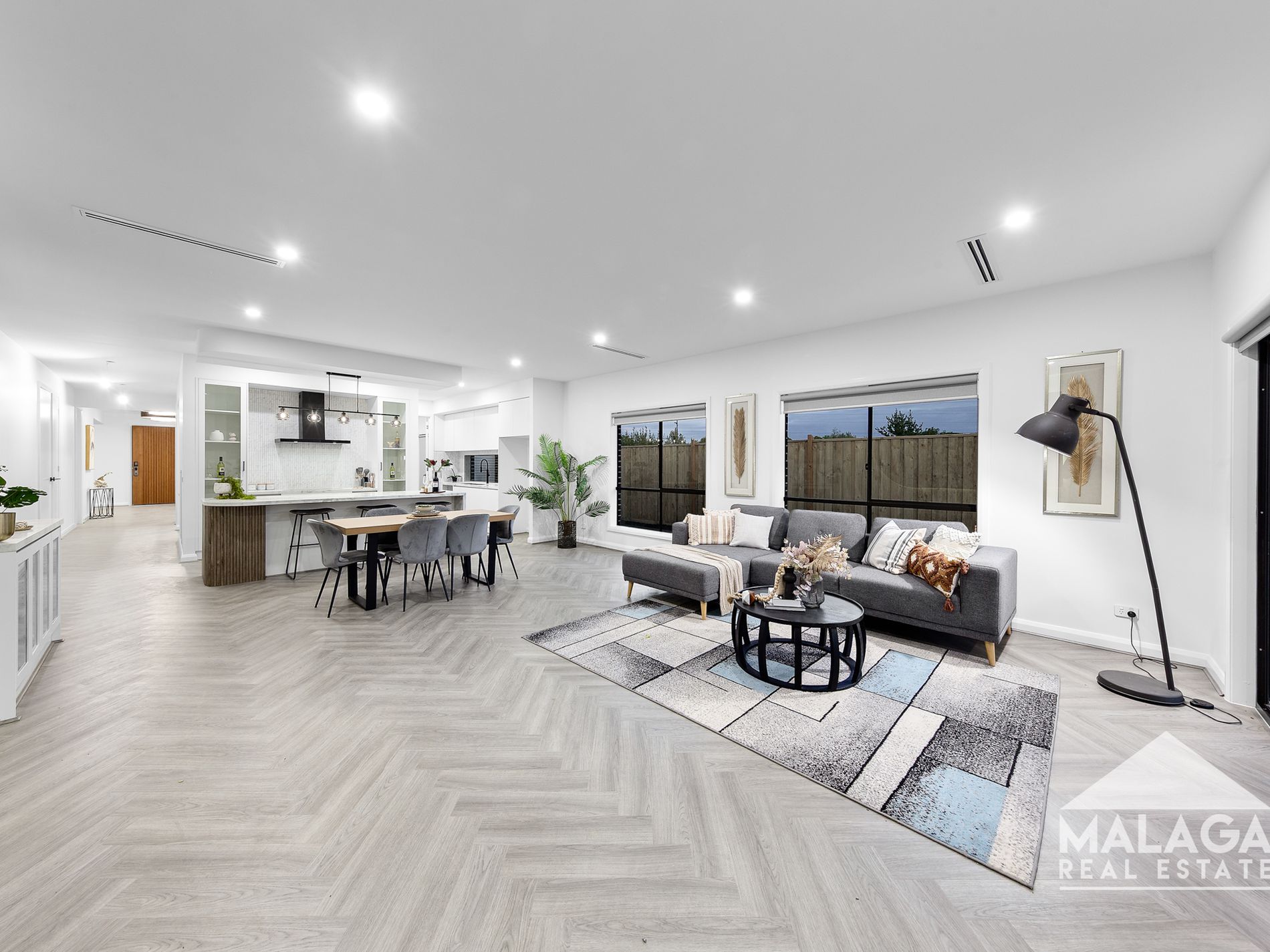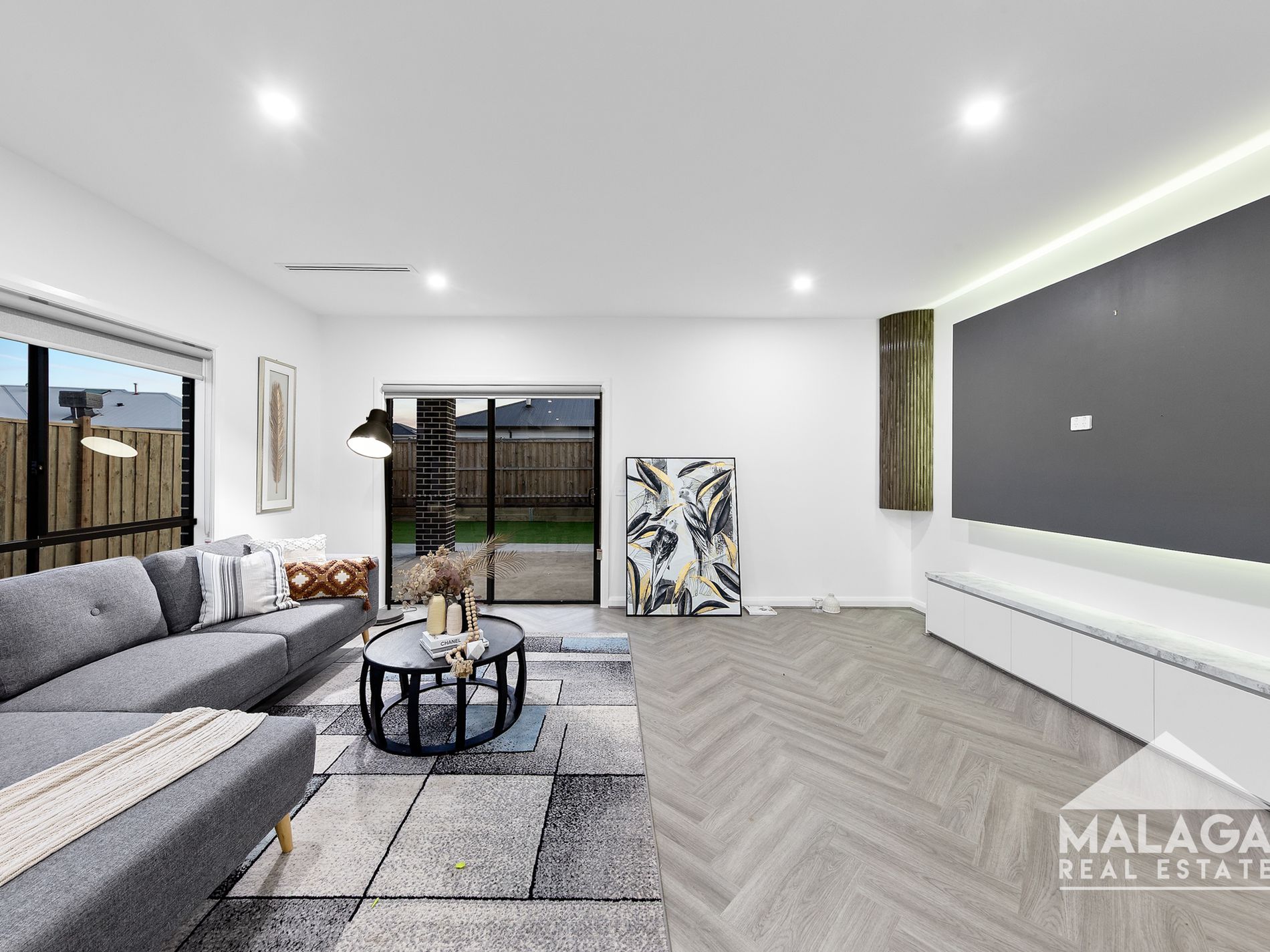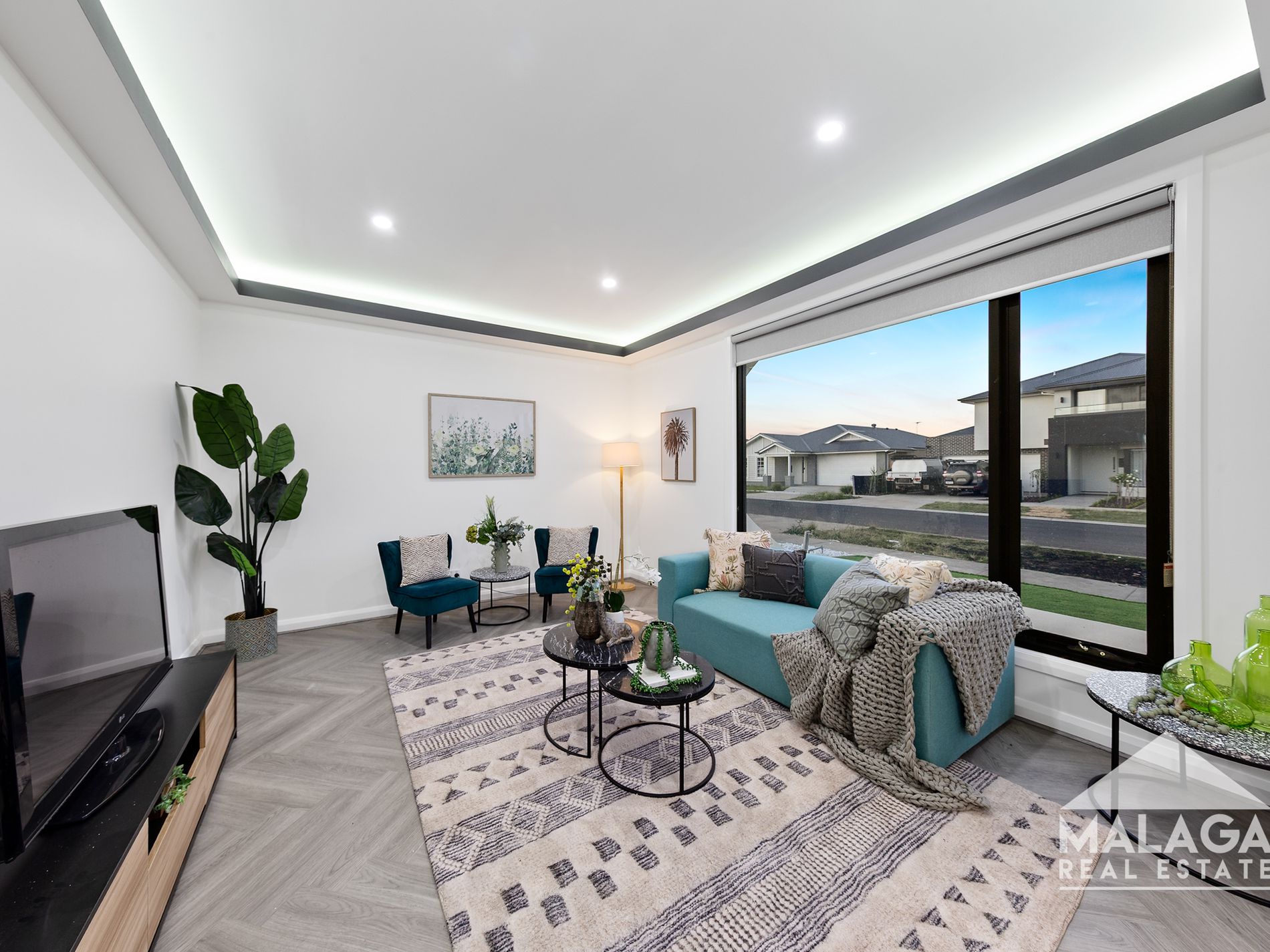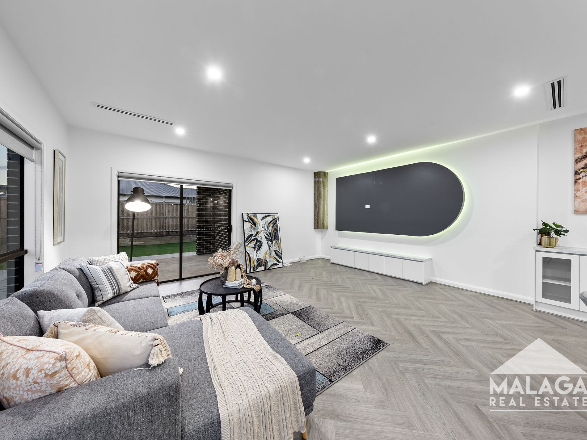 Designed for effortless indoor–outdoor living, the north-facing covered alfresco provides the perfect setting for year-round entertaining while overlooking a fully fenced backyard, ideal for children and pets. Inside, a welcoming front lounge adorned with plantation shutters offers a serene retreat, while a separate carpeted theatre room positioned behind double sliding doors creates the perfect space for movie nights or quiet relaxation.