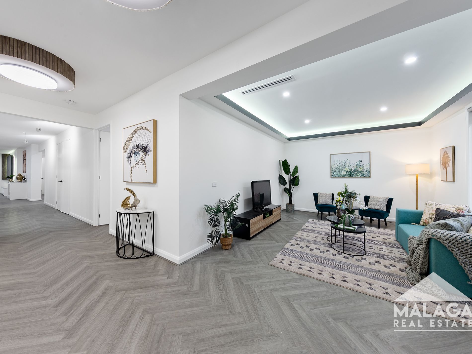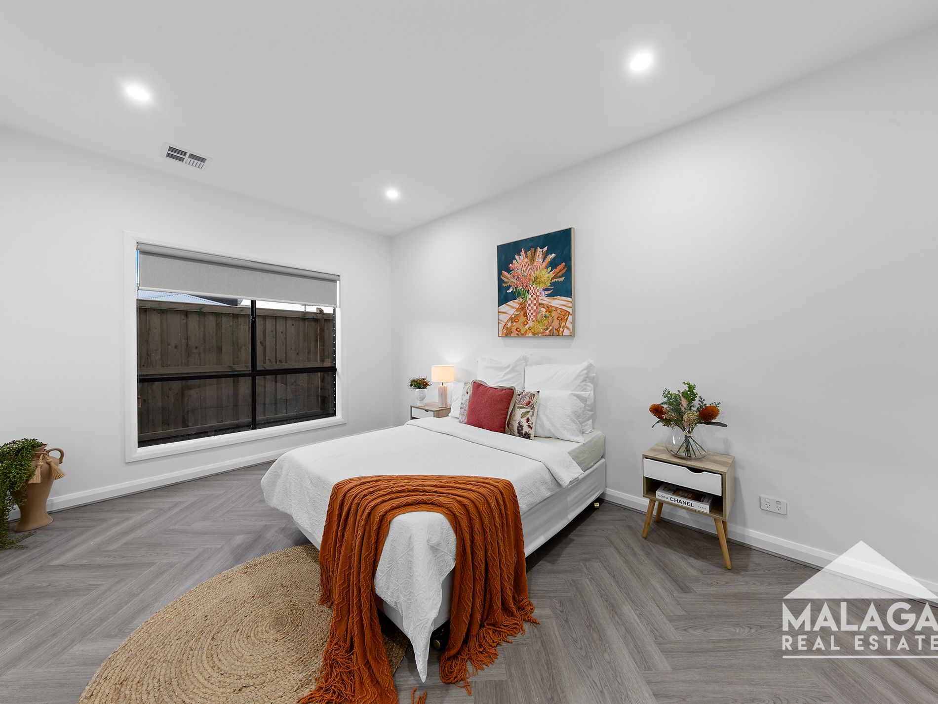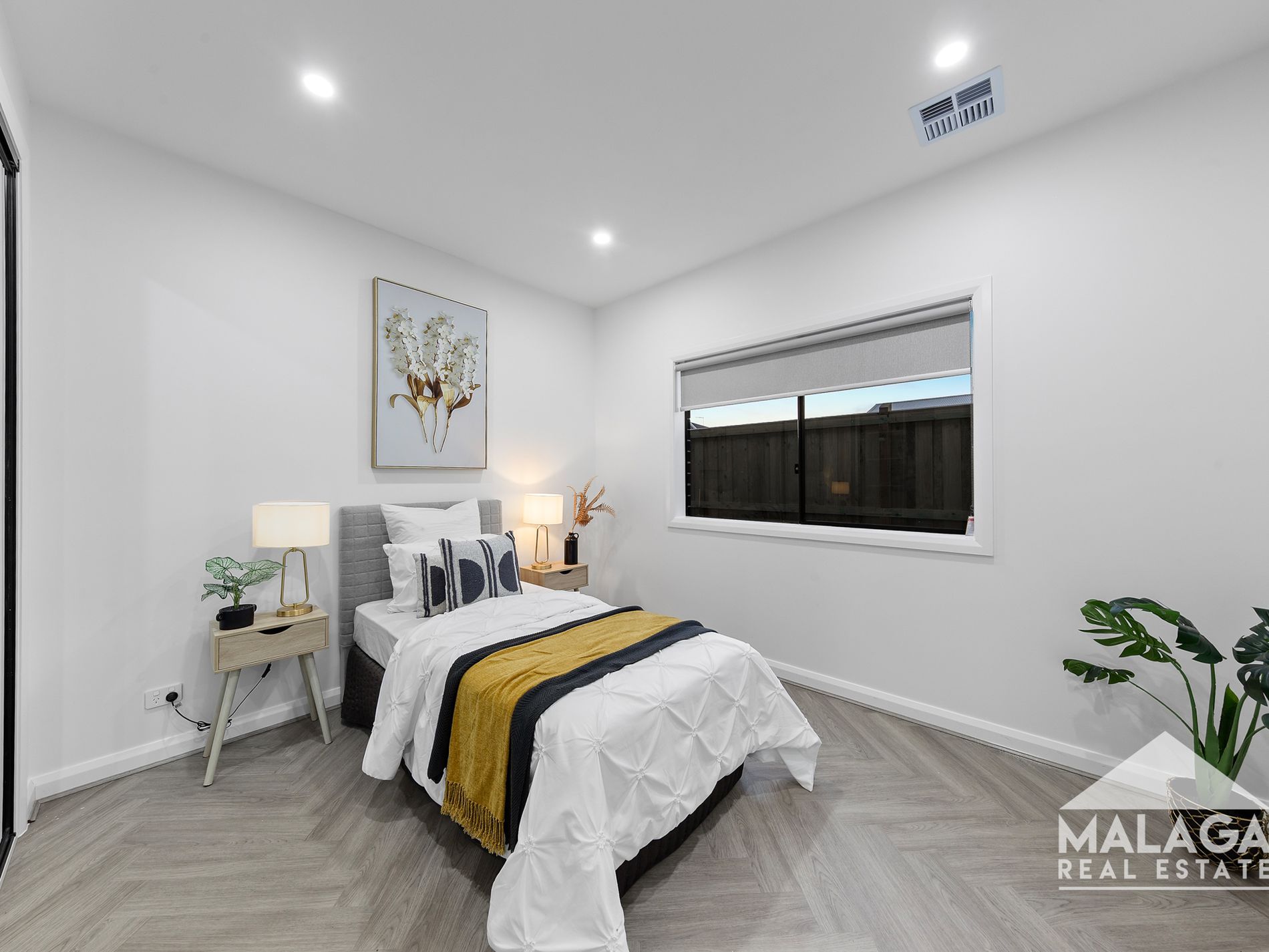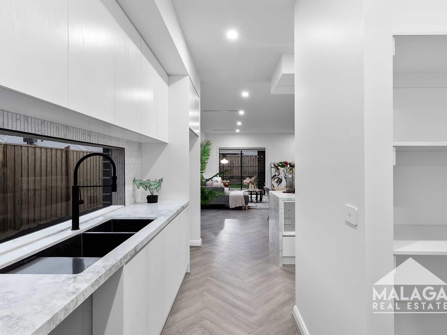 Designed for effortless indoor–outdoor living, the north-facing covered alfresco provides the perfect setting for year-round entertaining while overlooking a fully fenced backyard, ideal for children and pets. Inside, a welcoming front lounge adorned with plantation shutters offers a serene retreat, while a separate carpeted theatre room positioned behind double sliding doors creates the perfect space for movie nights or quiet relaxation.