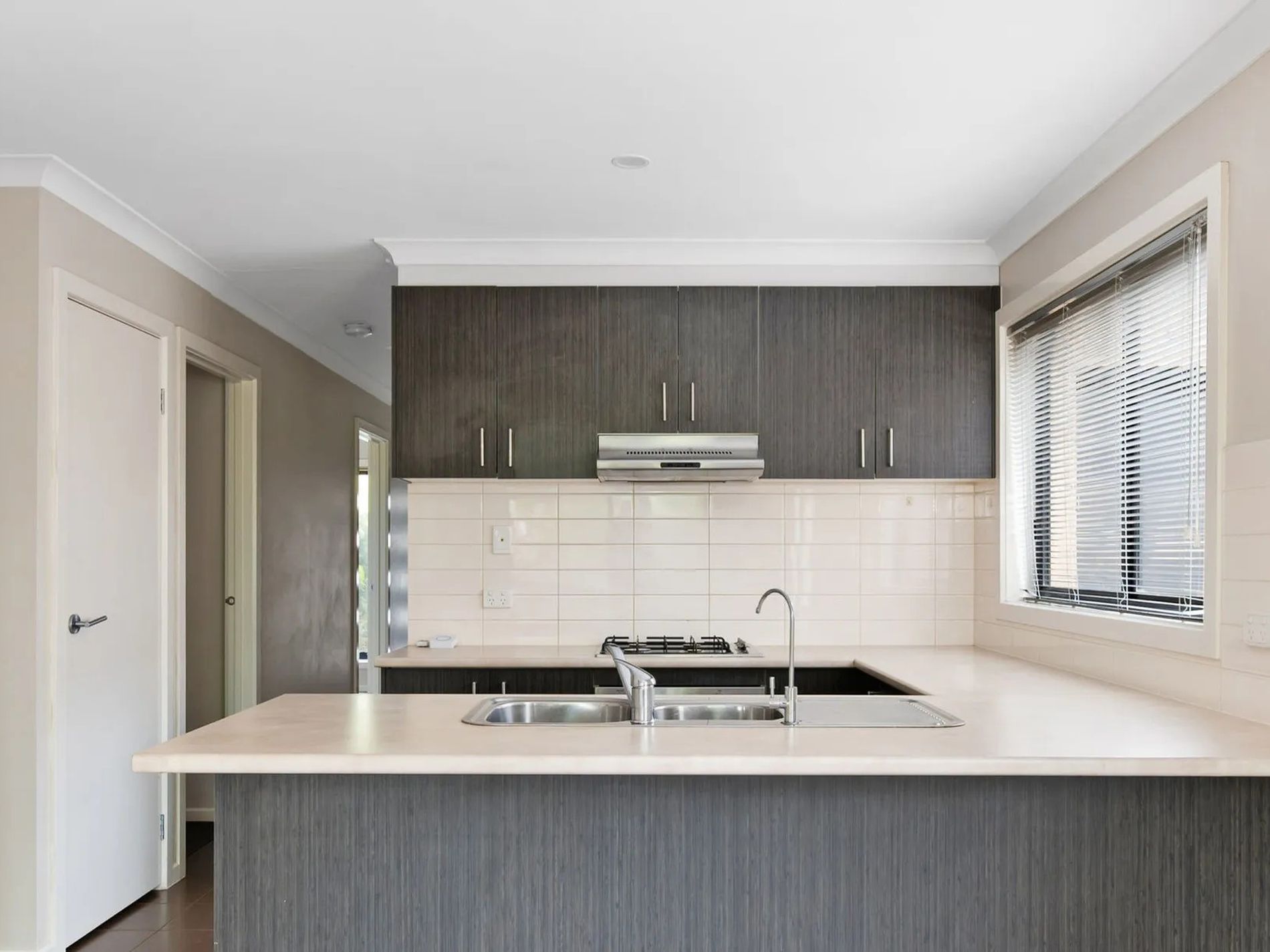 The heart of the home features a light-filled open-plan living and meals area, complemented by a sleek, modern kitchen equipped with stainless steel appliances and ample storage.